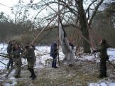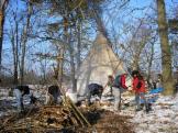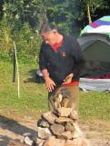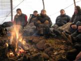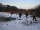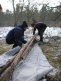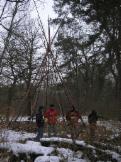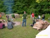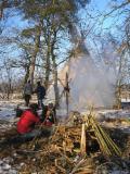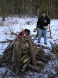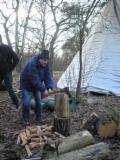 ![]() Ankunft Wintercamp | ![]() Erst wird Holz gesammelt ... | ![]() ... dann klein gesägt ... | ![]() ... und schließlich gehackt |