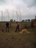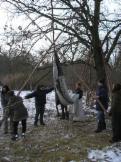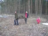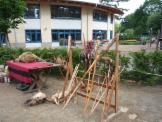 ![]() Zuerst die richtigen Zweige auswählen ... | ![]() ... schneiden ... | ![]() ... und zum Platz bringen. |